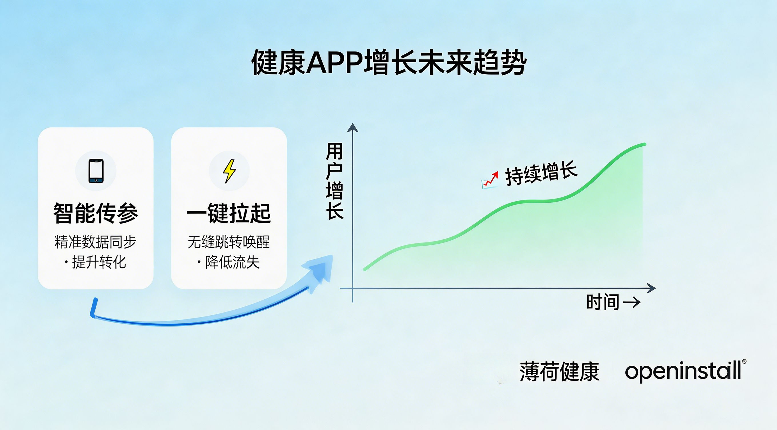 智能传参解决了平台数据统计、渠道归因的核心痛点,让运营更高效、投放更精准;一键拉起则直击用户体验短板,降低用户操作门槛,提升留存与转化。二者结合,既实现了平台运营效率的提升,又优化了用户使用体验,达成平台增长与用户体验的双向共赢。同时,合规精准的数据技术,也能帮助健康类APP严守数据安全底线,实现长期可持续增长,这也是整个健康APP行业未来的发展主流。