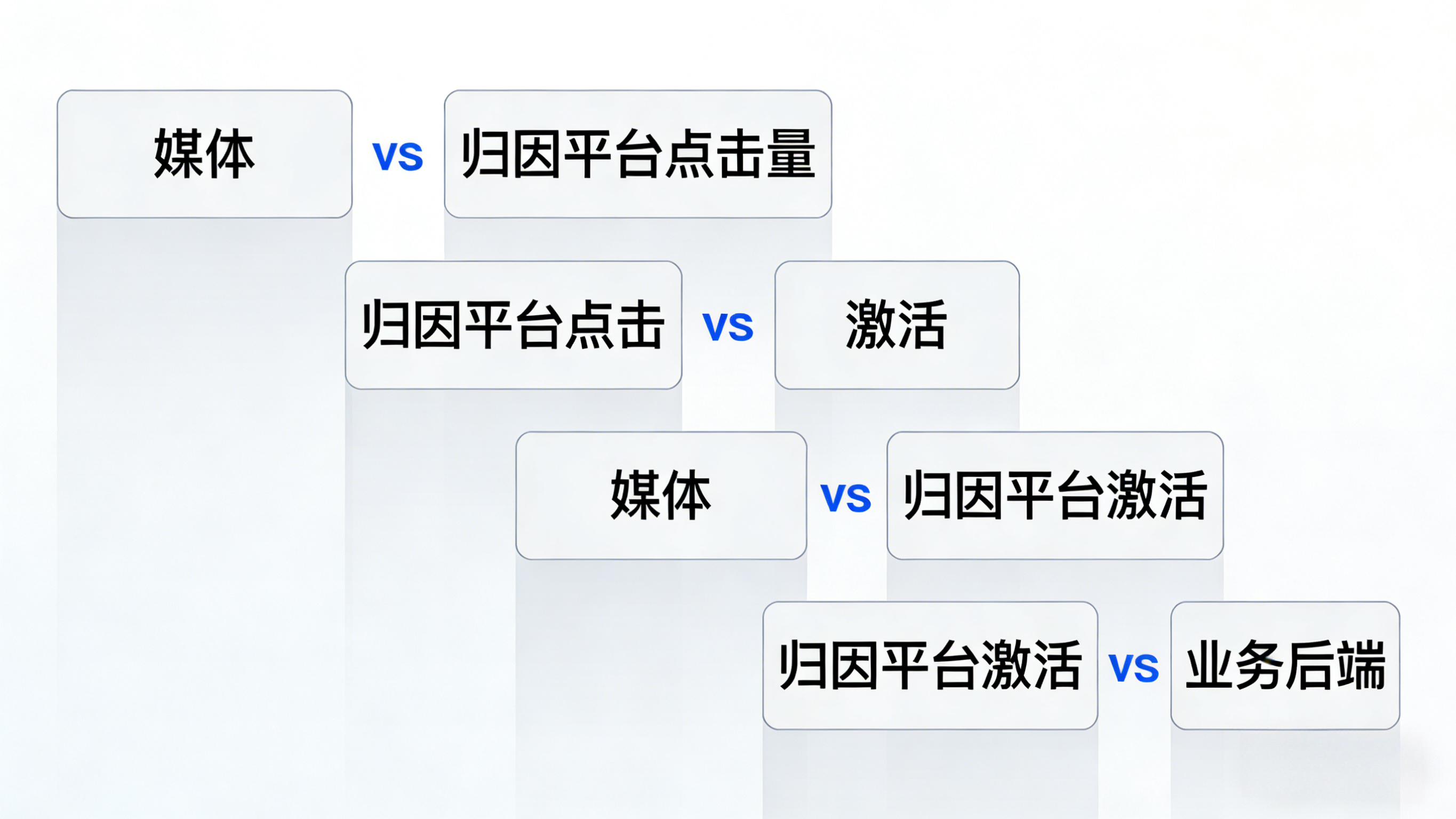 - 媒体点击量 vs 归因平台接收点击量:如果差值大于 10%,应排查是否存在大面积的网络劫持,监测链接中的宏参数拼接是否有语法错误,或者网页跳转由于服务器响应过慢导致用户直接关闭。
